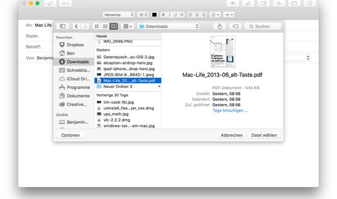 Per E-Mail lassen sich vor allem kleinere Dateien (10 MB oder weniger) super verschicken. Am Mac kann man dazu in der Mail-App eine neue E-Mail erstellen und an diese die gewünschte Datei anhängen. Leider kann nicht jede Datei ohne zusätzliche Software auf iOS-Geräten geöffnet werden. Alternativ reicht auch ein Rechtsklick auf die Datei im Finder. Danach wählst du „Bereitstellen“ → „Mail“ aus und schon wird eine neue E-Mail erstellt, die du ganz leicht an dich selbst adressierst und auf dem gewünschten Gerät öffnest.