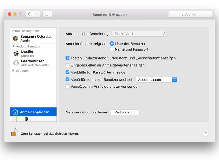 - Du nutzt dein iCloud-Passwort zur Anmeldung an deinem Mac. Schalte diese Option aus oder du kannst dich nicht automatisch am Mac einloggen.