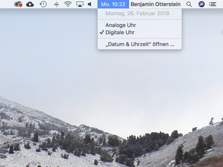 Kontrollieren Sie jetzt die Uhrzeit am oberen Bildschirmrand in der Menüleiste. Klicken Sie darauf, um auch das aktuelle Datum zu überprüfen. Sollte alles korrekt sein, dann können Sie die Systemeinstellungen verlassen. Führen Sie ansonsten einen Neustart durch.