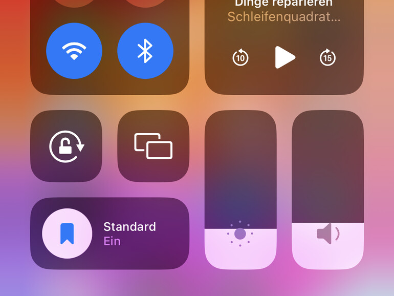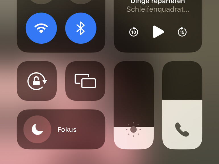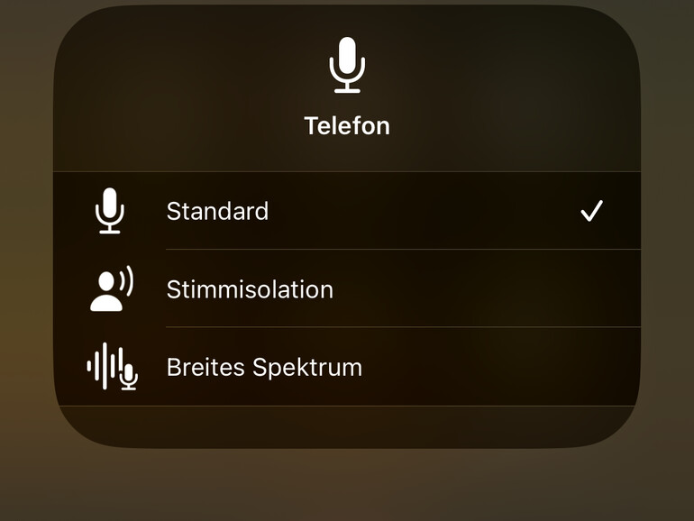 Sobald der Anruf läuft, wischst du von oben rechts nach unten, um das Kontrollzentrum zu öffnen. Tippe oben rechts auf „Modus“ neben dem Mikrofon-Symbol.