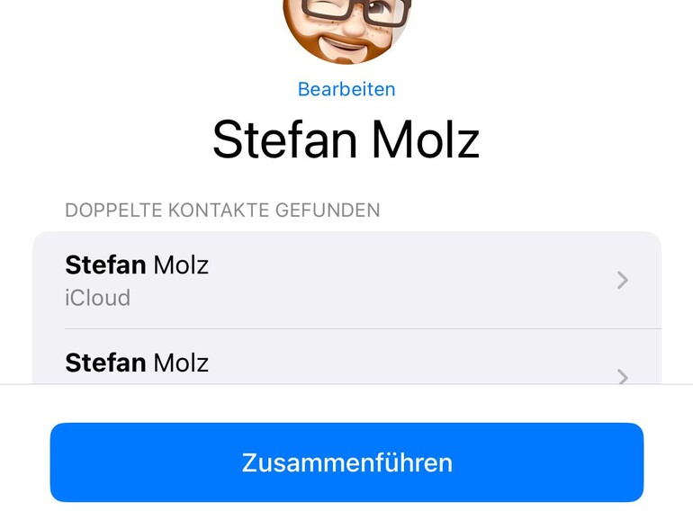 Es kann vorkommen, dass sich ein Kontakt mehrfach in deinem Adressbuch befindet – sei es, weil du beispielsweise vergessen hast, dass du ihn früher schon einmal angelegt hast, oder weil du eine elektronische Visitenkarte zugeschickt bekommen und importiert hast. Dein iPhone weist dich auf mögliche Dubletten hin, wenn du in der Kontakte-App in die Liste aller Kontakte navigierst. Um aus mehreren Einträgen einen sauberen zu machen, tippe auf den Hinweis oben in der Liste und wähle, wie mit den einzelnen Datensätzen verfahren werden soll. Tippe zum Abschluss auf „Zusammenführen“. Natürlich kannst du dein iPhone auch anweisen, die Dopplung zu ignorieren. Tippe dazu auf den entsprechenden Eintrag.