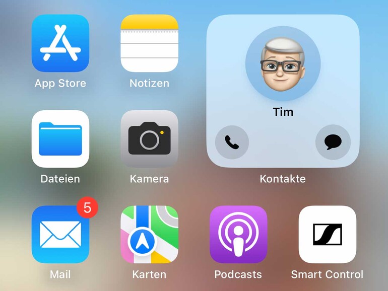 Ein besonders schneller Weg, um einer anderen Person eine Nachricht zu schreiben oder sie anzurufen, führt über ein Widget auf dem Homebildschirm deines iPhone. Um dieses hinzuzufügen, halte deinen Finger auf dem Homescreen, bis die Icons zu wackeln beginnen. Tippe nun auf das Plus oben links, wähle das Kontakte-Widget mit nur einem Kontakt und tippe dann auf „Widget hinzufügen“. Tippe abermals auf das noch wackelnde Widget, um den Kontakt auszusuchen, den du schnell kontaktieren möchtest. Aktiviere zudem die Option „Tasten anzeigen“. Fortan genügt ein Tipp auf das jeweilige Symbol auf dem Widget, um eine Nachricht respektive einen Anruf zu starten.