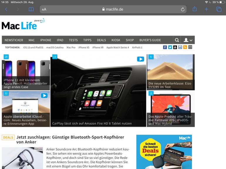 Eine simple Wischgeste in Richtung linken oder rechten Bildschirmrand schließt das Slide-Over-Fenster wieder, damit Sie sich wieder ganz auf Safari konzentrieren können. Um die Ansicht erneut zu öffnen, reicht eine Wischgeste vom selben Bildschirmrand zur Mitte.