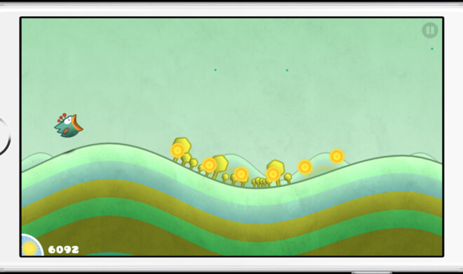 Wirklich originelle Spiele findet man nur selten im App Store, neue Genres werden sind Mangelware. Eine der seltenen Ausnahmen ist der Überraschungshit Tiny Wings von 2011, das als „Urgroßvater“ von Spielen wie etwa Altos Adventures angesehen werden darf. In Tiny Wings schlüpft man in das Federkleid eines kleinen Vogels, der auf der Jagd nach dem nächsten High Score möglichst weit über hügelige Inseln flattern muss. Hierzu lässt man den Vogel per Fingerzeig in den Sturzflug gehen, um die Hügel der kunterbunten Insellandschaften als Rampen zu nutzen und Schwung zu holen. Umso schneller man fliegt, desto weiter kommt man voran und sammelt entsprechend mehr Punkte. Nur mit dem richtigen Timing erreicht man dabei die nächste der vom Terrain zunehmend schwierigeren Inseln. Das Ziel des Spiels ist es, möglichst viele Inseln zu überqueren, bevor das Zeitlimit abgelaufen ist.