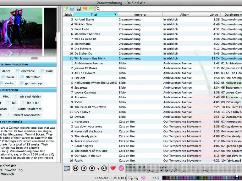 Wem Wohlklang über alles geht, der ist mit Decibel (29,49 Euro) oder Fidelia (17,99 Euro) sehr gut bedient, die sich mit Sonderfunktionen explizit an Audiophile richten. Beide Anwendungen können mit allen wichtigen Formaten klar, in denen Musik verlustfrei gespeichert ist. Doch auch auf schnöde Formate verstehen sie sich, wenn die Anwendungen auf Wunsch auf die iTunes-Mediathek aufsatteln. Bei der Wiedergabe von Lossless-Formaten unterstützen beide Programm lückenlose Wiedergabe, was besonders bei Live-Mitschnitten zum Tragen kommt. Um Aussetzerzu vermeiden, sind beide Anwendungen in der Lage, abzuspielende Titel in den Arbeitsspeicher zu laden.
