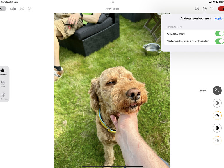 Wenn es dir wie uns geht, weinst du gelegentlich noch immer „Aperture“, Apples ehemaligem Foto-Tool für Profis, die eine oder andere Träne nach. Manche Profi-Versionen hat Apple aber durchaus in die Fotos-App gerettet, andere werden nach und nach eingebaut. Wenn du beispielsweise eine Serie von Fotos bearbeitest, kannst du schon länger die Bildanpassungen kopieren und auf weitere Fotos anwenden. Neu ist, dass du jetzt auch den Zuschnitt der Bilder übertragen kannst. Ein sehr spitzer Anwendungsfall vielleicht. Aber ihn zu kennen, kann dir schnell eine Menge Zeit sparen.