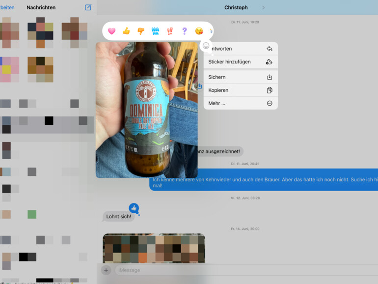 Immer wieder schickt sich Apple an, iMessage mit neuen Funktionen aufzubohren und attraktiver zu machen. Vor einiger Zeit kamen etwa die „Tapbacks“ hinzu, mit denen du kurz und knapp auf Nachrichten reagieren kannst. Etwa mit einer „Daumen hoch“-Geste. Schon immer hat uns gewundert, warum Apple diese Funktion auf sechs Icons begrenzt hat. Mit den Herbst-Updates werden diese Icons nicht nur bunt (bislang waren sie grau), sondern du kannst tatsächlich auch mit jedem verfügbaren Emoji auf eingegangene Nachrichten reagieren.
