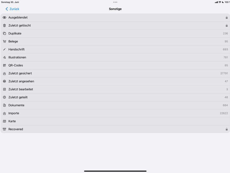 Mit der neuesten Betriebssystemgeneration hat Apple die Fotos-App nicht nur neu gestaltet, sondern versucht auch, sie an vielen Stellen nützlicher zu machen. Ein gutes Beispiel dafür ist die Verfügbarmachung zahlreicher Standardfilter, die du (zumindest in der Beta-Version) unter dem nur wenig sagenden Begriff „Sonstige“ findest. Hierüber kannst du dir etwa Fotos anzeigen lassen, in denen Apple QR-Codes, Belege, Dokumente, handschriftliche Notizen und mehr erkannt haben will. Tatsächlich klappt das schon sehr gut. Zwar werden noch nicht alle Fotos korrekt einsortiert, fälschlich erkannte sind uns dafür aber auch noch nicht untergekommen. Selbst, wenn diese Funktion nie perfekt arbeiten wird, wird sie dir in vielen Fällen Zeit und Sucharbeit sparen.
