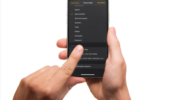 Anders als etwa in der Podcasts-App kannst du in der Musik-App leider keinen Timer einstellen, um die Wiedergabe nach einer bestimmten Zeit zu stoppen. Dennoch musst du nicht auf die Funktion verzichten. Wenn du Musik auf deinem iPhone wiedergibst, kannst du nämlich einfach zu App „Uhr“ wechseln. Wähle nun den Reiter „Timer“ aus. Stelle eine beliebige Zeit ein und tippen dann auf „Timer-Ende“. Scrolle an das untere Ende und wähle „Wiedergabe stoppen“ aus. Anschließend drückst du auf „Einstellen“ oben rechts. Starte nun den Timer. Anstelle eines Soundeffekts stoppt er die aktuelle Wiedergabe.