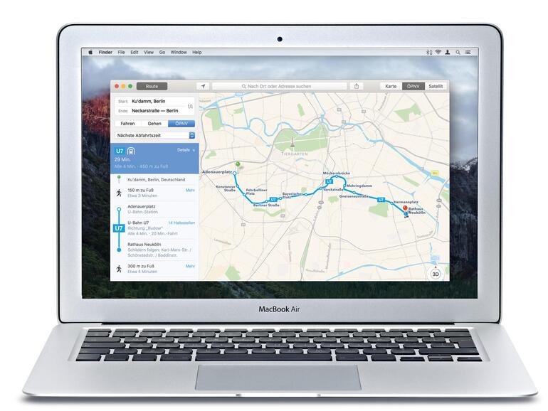 Kombinieren Sie etwa eine Einladung zu einem Meeting mit den von Karten bereitgestellten Reisedaten, stellen Sie sicher, stets die richtige S-Bahn zu erreichen und pünktlich am Zielort zu erscheinen. Erhalten Sie die Einladung zu Ihrem Treffen per E-Mail, brauchen Sie sich nicht einmal um einen Eintrag in Ihren Terminplaner zu kümmern – OS X „El Capitan“ und iOS 9 erkennen das in Mail gesetzte Datum und übertragen es in einen speziellen Kalender namens „In Mail gefunden“.