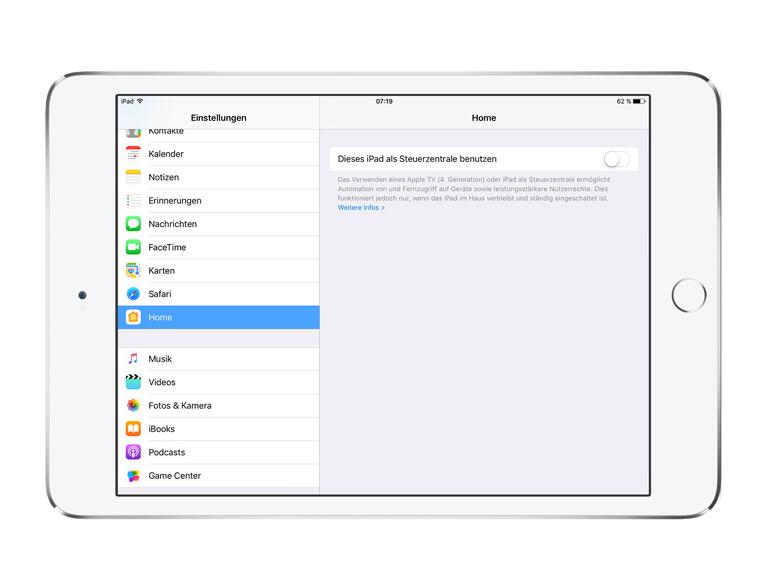 Neben einem Apple TV kann auch ein iPad als Steuerzentrale für Ihre HomeKit-Geräte verwendet werden. Dadurch können Sie Ihre Geräte auch über das Interne steuern, wenn Sie mal nicht Zuhause sind. Jedoch dürfen Sie dazu Ihr iPad nicht mit aus der Wohnung nehmen, sondern sollte stets in den heimischen vier Wänden und mit ausreichenden Energie versorgt sein.