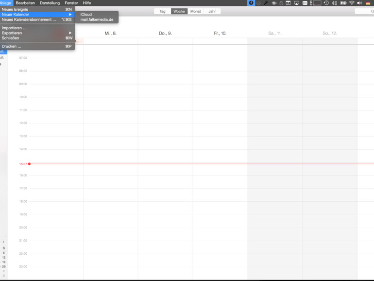 1. Einen neuen Kalender legen Sie über „Ablage“ im Menü an. Dort wählen Sie dann „Neuer Kalender“ und iCloud. Sollten Sie noch andere Kalender-Server nutzen, werden diese hier ebenfalls aufgeführt.