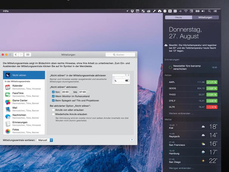Außerdem können Sie so genannte Widgets zur „Heute“-Ansicht der Mitteilungszentrale hinzufügen. Im Mac App Store finden sich immer mehr Programme, die genau dafür konzipiert wurden und die Zentrale nützlich erweitern.