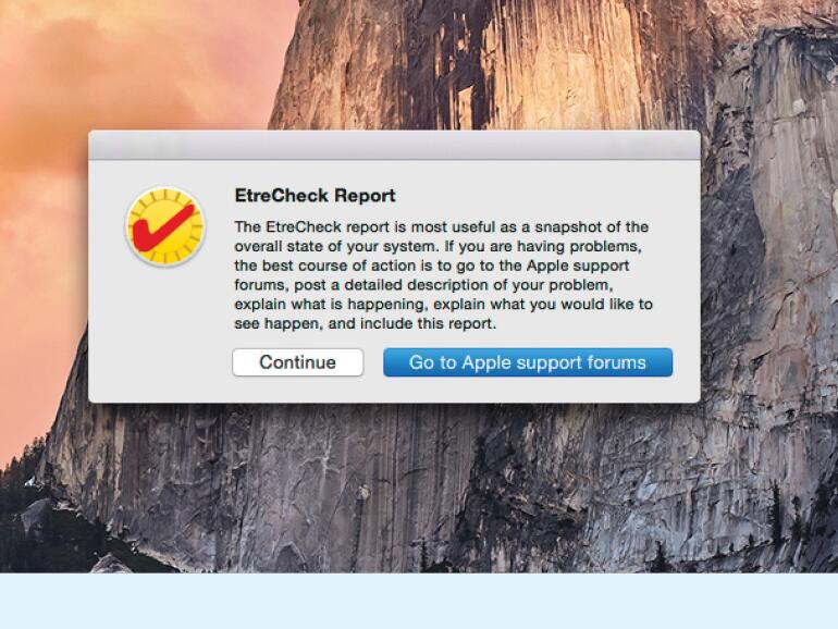 Anwender, die sich unsicher sind welche Aufgaben bestimmte Startobjekte übernehmen, können mit Hilfe der Freeware EtreCheck Systeminformationen weitergeben, um in Foren um Hilfe zu fragen.