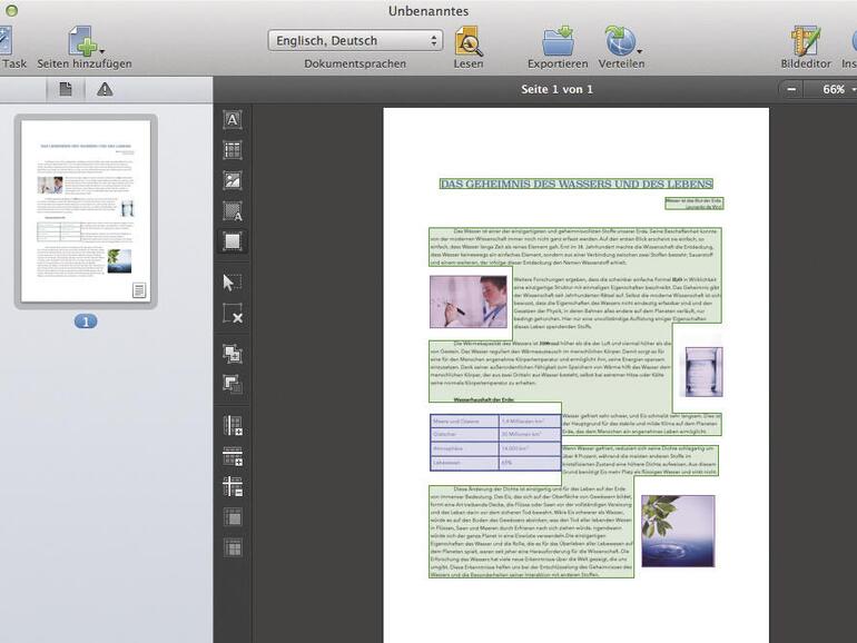 Dieses besteht aus zwei Ebenen: einer Bildebene und einer Textebene, in welcher der vom Programm erkannte Text gespeichert wird. Anhand dieser Textebene wird das PDF-Dokument dann für andere Programme oder auch Spotlight durchsuchbar. Möchtest du den Text hingegen in einem Textverarbeitungsprogramm weiter bearbeiten und auch in eine Datenbank übernehmen, dann sicher den Text in einer Textdatei, beispielsweise als RTF (Rich Text Format) oder als Word-Datei. Für den Erfolg der Texterkennung ist eine qualitätsvolle Vorlage von immenser Bedeutung. Je besser diese ist, desto höher ist die Erkennungsquote. Ein undeutliches Schriftbild, eine gewellte und geknickte oder auch fleckige Vorlage macht es dem Scanner und dem verwendeten Programm sehr schwer, den Text zu erkennen. Dasselbe gilt für unscharfe oder ungleichmäßig belichtete Fotos. Zwar besitzen die meisten Programme oder Apps Funktionen, nicht oder falsch erkannte Zeichen selbst zu verbessern oder zu ergänzen, Wunder kannst du dabei aber keine erwarten.