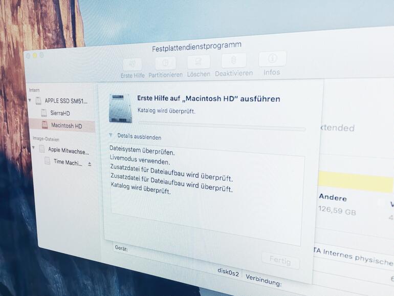 In manchen Fällen hilft auch das Festplattendienstprogramm einfach nicht mehr weiter. In unserem Fall wollten wir die Macintosh HD nachträglich partitionieren. Dabei stießen wir stets auf den Fehler „Exit-Code für Dateisystemprüfung lautet 8“. Auch eine Reparatur über die "Erste Hilfe"-Funktion war leider nicht möglich. Daher konnte uns nur noch der Single User Mode und das Command Line Tool „fsck“ helfen. Dieses ist standardmäßig auf jedem Mac vorinstalliert und nur über einen Command-Line-Befehl abrufbar. Es klingt allerdings komplizierter, als es in Wahrheit ist.