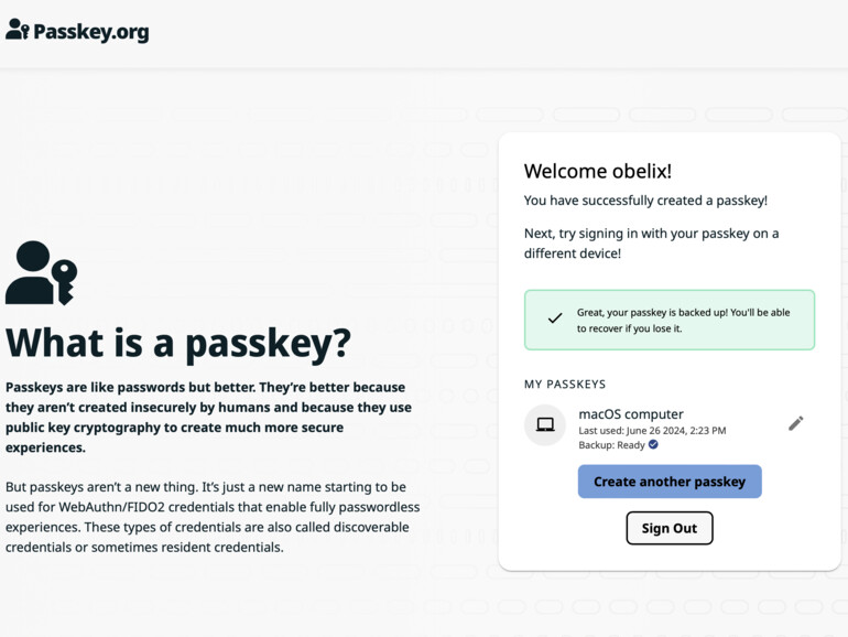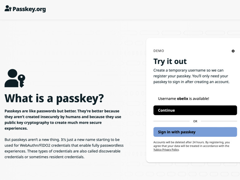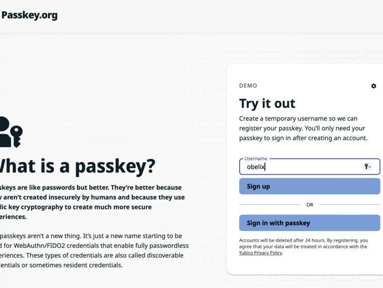 Im Workshop zeigen wir dir, wie du einen Passkey erstellst und dich damit anmelden kannst. Das Vorgehen ist auf vielen Webseiten ähnlich wie auf der erwähnten Beispielwebseite.