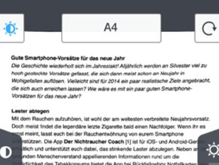 Vor allem iPad mini und iPad sind mit ihren großen Bildschirmen für die Bearbeitung von PDF-Dateien prädestiniert. Die App PDF Expert 5 (8,99 Euro; iPad/iPhone) leistet in diesem Bereich hervorragende Dienste. Mithilfe der App können Sie Textpassagen hervorheben und Anmerkungen hinzufügen. Weiter ist es möglich, Markierungen vorzunehmen und Dokumente zu unterschreiben. In mehrseitigen Dokumenten haben Sie die Möglichkeit, die Reihenfolge der Seiten zu ändern oder zu löschen. Mehrere PDFs lassen sich zu einem Dokument zusammenfügen.