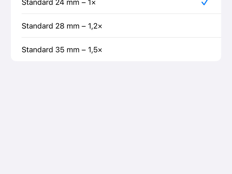 Das iPhone 15 Pro Max verfügt über eine neue praktische Funktion, die dich näher an die professionelle Fotografie bringen soll. Auf Wunsch zeigt dir nämlich die Kamera-App die aktuellen Brennweiten für die Hauptkamera an. Zudem kannst du mit einem Tipp auf das „1x“-Symbol zwischen 24 Millimeter (mm), 28 mm und 35 mm wechseln. Jedoch lässt sich dies auch verhindern, indem du die Einstellungen-App öffnest und dort zunächst „Kamera“ und dann „Hauptkamera“ auswählst. Gleich oben findest du die Optionen „28 mm“ und „35 mm“, die du einfach abwählen kannst.