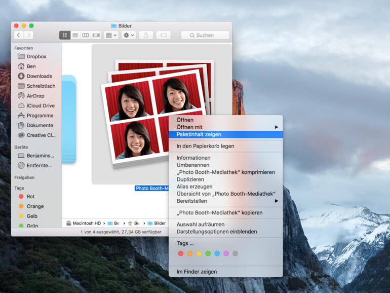 In den Foto-Ordner von Photo Booth gelangt man mit wenigen einfachen Schritten: