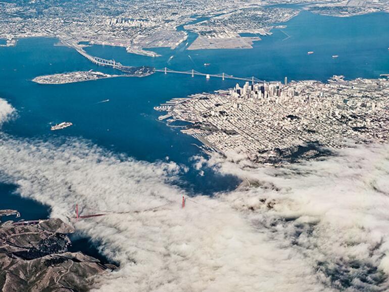 » Bei Tag und Nacht: Abedi vermischt gerne Fotos vom Cockpit (s. unten) mit Ausblicken aus dem Fenster, wie hier auf San Francisco.
