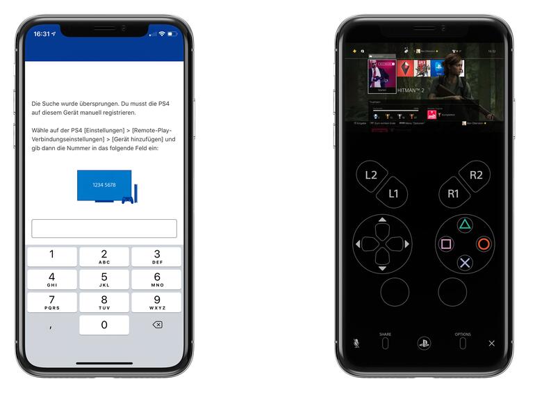 Um den Vorgang zu beschleunigen, tippen Sie auf „Manuell registrieren“ und geben den auf dem TV angezeigten Code ein. Bestätigen Sie die Eingabe und schon wird die Registrierung in Gang gesetzt. Sie werden direkt verbunden und sehen auf Ihrem iPhone nun digitale Tasten sowie den Bildschirm Ihrer PS4.