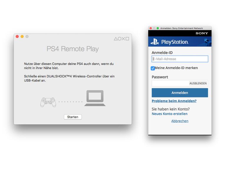 Tipp: Wenn sich Ihr Mac und Ihre PS4 im selben Netzwerk befinden, erzielen Sie die bestmögliche Performance. Für das Spielen via Internet empfiehlt Sony eine schnelle Internetverbindung mit mindestens 5 Mbit/s.