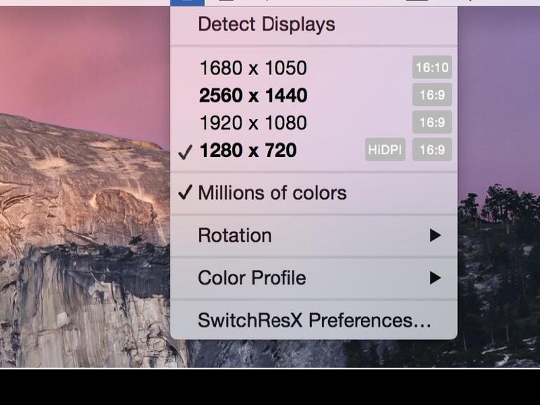 3 Sie können jederzeit zwischen HiDPI- und normalen Auflösungen wechseln. Wenn Sie häufig zwischen verschiedenen Auflös ungen wechseln, sollten Sie sich unbedingt das praktische Menulet SwitchResX anschauen (kostenlos, madrau.com).