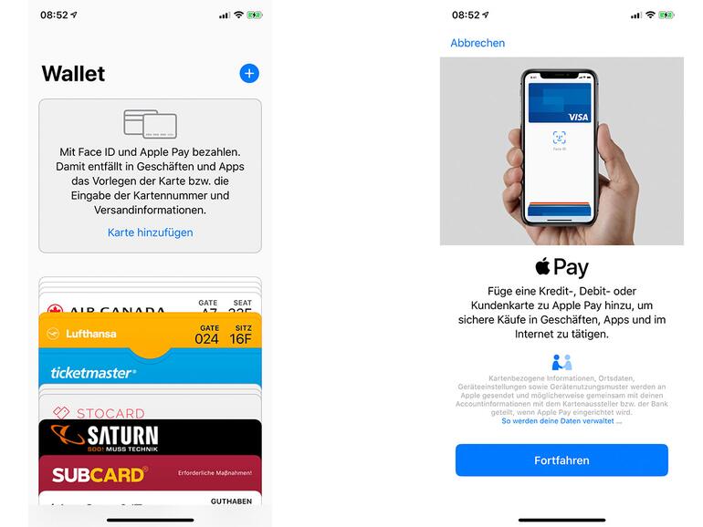 Hinweis: Apple Pay ist für das iPhone SE sowie alle Modelle ab dem iPhone 6 (und neuer) verfügbar.