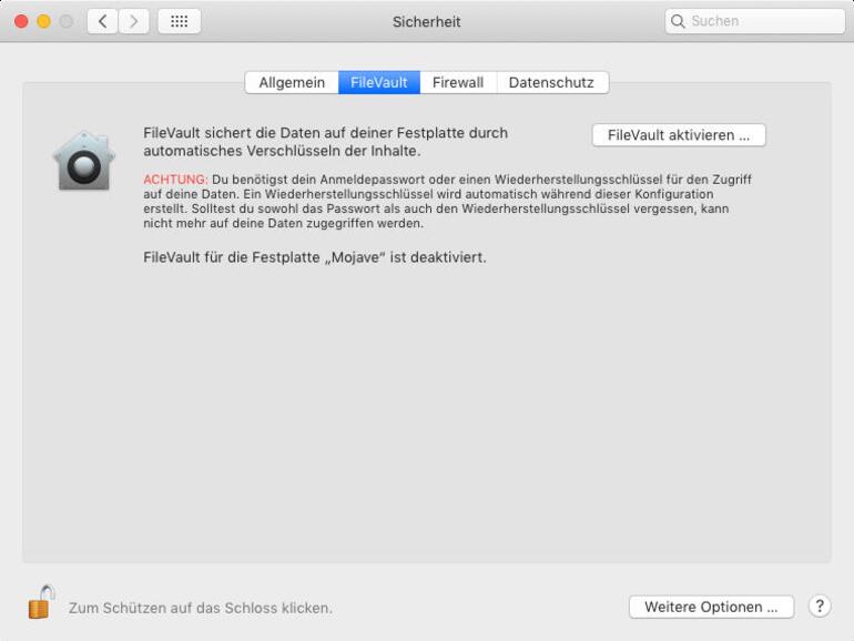 Die zweite wichtige Gruppe bilden die umfangreichen und gut ins System integrierten Funktionen zum Verschlüsseln von Daten. Richtig konfiguriert, schützen diese auch, wenn der Mac oder eine Back-up-Platte gestohlen werden.