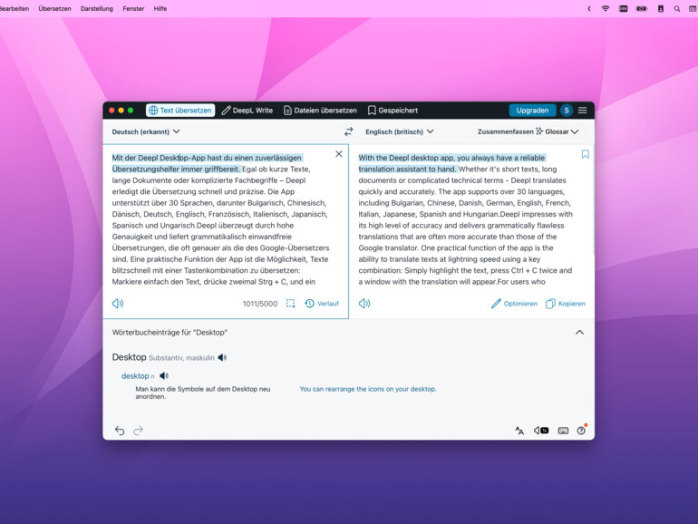 Für Nutzer, die regelmäßig längere Texte übersetzen müssen, bietet Deepl die Pro-Version an, die keine Zeichenbeschränkung hat und zusätzliche Funktionen integriert. Die Pro-Version kann direkt in die Desktop-App eingebunden werden und erweitert deren Möglichkeiten erheblich.