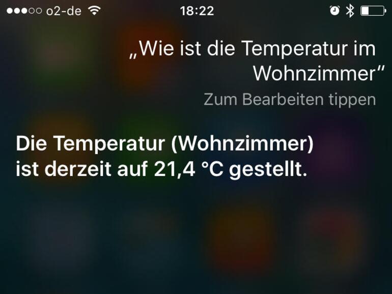 Als nettes Extra lassen sich HomeKit-Geräte über Siri steuern. Die Sprachsteuerung erkennt zum Beispiel die Namen von Geräten, Räumen und Szenen, aber auch deren Eigenschaften. So kannst du Siri einfach fragen „Wie ist die Temperatur im Wohnzimmer?“, um den Temperatursensor im Wohnzimmer abzufragen. Oder du gibst Anweisungen, zum Beispiel „Schalte die Lichterkette aus!“, um ein Gerät mit diesem Namen auszuschalten. Da der Name das Gerät bereits eindeutig identifiziert, kannst du dir die zusätzliche Angabe des jeweiligen Raumes sparen.