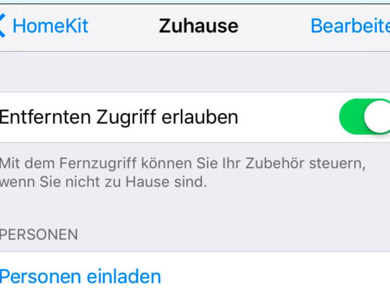 Wohnst du nicht allein, solltest du eine Möglichkeit vorsehen, dass sich die HomeKit-Geräte nicht nur mit deinem iPhone steuern lassen. Man macht sich nicht sehr beliebt, wenn man das Haus verlässt und der Rest der Familie weder das Licht noch Heizung eingeschaltet bekommt. Um den Haussegen vor Schieflagen zu bewahren, erlaubt HomeKit das Einladen anderer Benutzer. Diese müssen ebenfalls über eine iCloud-ID und natürlich ein HomeKit-kompatibles iOS-Gerät verfügen. Nach erfolgreicher Einladung können diese Nutzer ebenfalls den Status von Geräten über die HomeKit-Datenbank abfragen und deren Funktionen steuern.