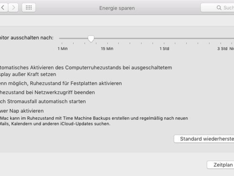 Geht der Mac nicht mehr in den Ruhezustand oder wacht immer sofort wieder auf, kann es an defekten Vorgaben für „Energie sparen“ liegen. Probiere zunächst, die zugehörige Systemeinstellung zu öffnen, etwas zu ändern und dann die App zu beenden. Danach stellst du wieder deine ursprünglichen Werte ein. Nun prüfst du die Zeit im Änderungsdatum von „Library/Preferences/SystemConfiguration/com.apple.PowerManagement.plist“ auf dem Startvolume. Ist sie nicht aktuell oder bleibt das Problem bestehen, löschst du die plist-Datei. Dafür musst du ein Admistrator-Passwort eingeben. Anschließend setzt du die Energiespareinstellungen erneut.