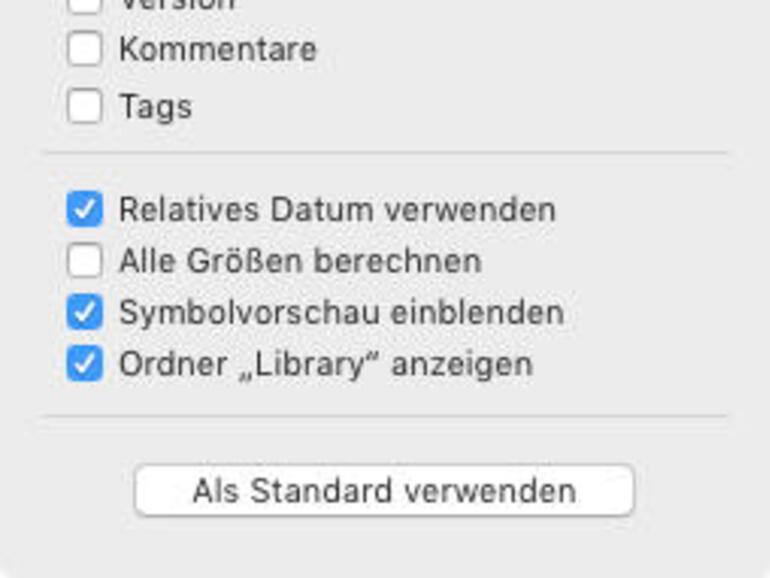 Bei der Fehlersuche und beim Überprüfen von Einstellungen, App-Bibliotheken, Fonts und Plug-ins hat man viel mit dem Library-Ordner des Benutzers zu tun. Apple blendet ihn jedoch im Finder aus, um ihn vor Änderungen zu schützen. Für den einmaligen Zugriff hältst du im Finder beim Öffnen des „Gehe zu“-Menüs die Wahltaste gedrückt. Damit der Ordner wieder ganz normal in deinem Home-Verzeichnis erscheint, öffne dieses. Dann rufst du die Darstellungsoptionen auf („Befehl-J“). Aktiviere ganz unten die Option „Ordner Library anzeigen“.