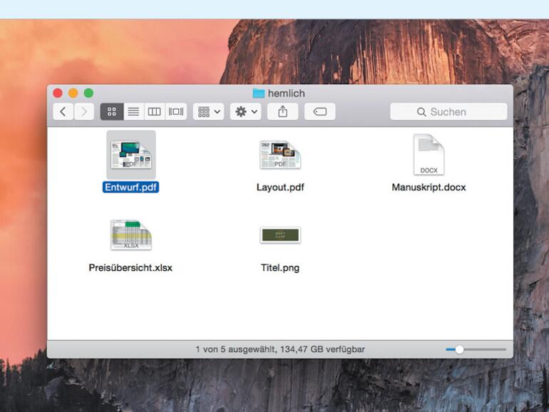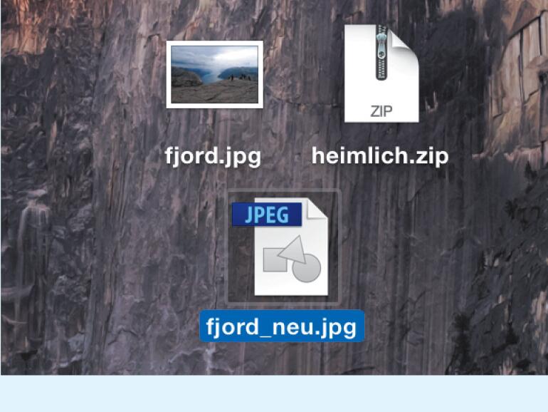 Das OS X führt jetzt Bild und geheime Daten in einer neuen Datei zusammen. Diese bekommt den neu vergebenen Namen, sieht aus wie ein Foto und öffnet auf Doppelklick die enthaltene Bilddatei.