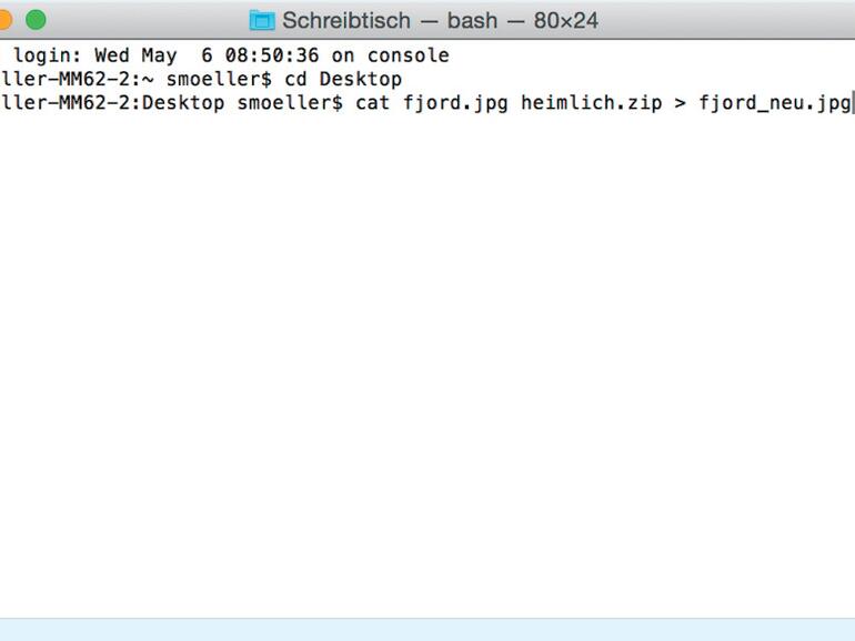 Zwei einfache Terminal-Befehle genügen, um heimliche Dokumente in einer Foto-Datei zu verstecken. Schritt 2: