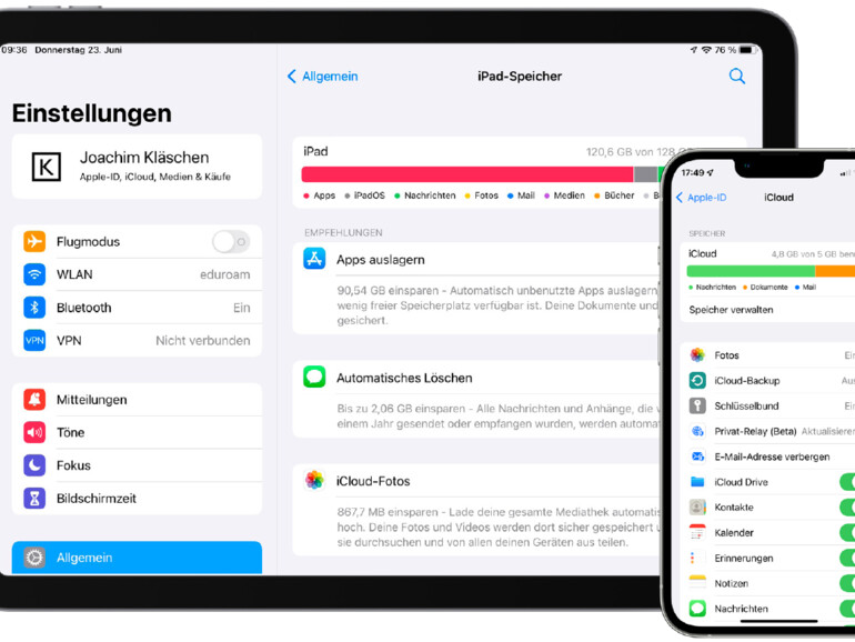 Wenn du dein iPhone und iPad im Wesentlichen dazu verwendest, um zu kommunizieren, im Internet zu surfen und den Tag zu strukturieren – sowie gelegentlich ein Foto schießen – wird die aktuelle 64-GB-Einstiegskonfiguration ausreichend für dich sein. Doch wenn du das Aufwachsen deines Nachwuchses mit täglichen Bildern und Videos dokumentierst, Musik, Filme und Serien den öden Arbeitsweg beleben sollen, du das iPad für Podcast- und Videoschnitt verwendest und anspruchsvolle Spiele nach Feierabend für Zerstreuung sorgen sollen, teilen dir die Geräte bald mit, dass die Grenzen des Speichers absehbar erreicht sind. Im Gegensatz zu vielen anderen Herstellern bietet Apple keine Möglichkeit, den Speicher durch das Einstecken einer handelsüblichen microSD-Karte günstig zu erweitern. Wer es sich leisten kann, sollte daher stets ein iPhone oder iPad mit möglichst viel Speicher kaufen; im Zweif...