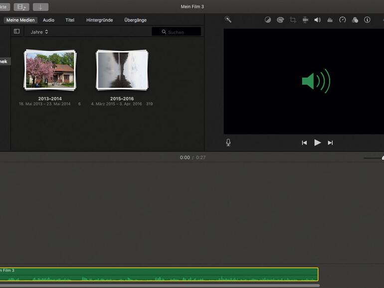 Für das Entfernen von einfacheren Tonstörungen wie Rauschen oder Hintergrundgeräusche von Autos und Menschen gibt es dagegen eine ganze Reihe an wirksamen Spezialtools. Grundsätzlich sollte man aber den Arbeitsaufwand nicht unterschätzen und sich auf Enttäuschungen gefasst machen. Für Heimanwender sind die meisten Profi-Lösungen nach unserer Meinung zu teuer und man investiert das Geld besser in ein gutes Mikrofon. Vergleichsweise preiswert ist der Filter Sound Soap, den es für 80 Euro im App Store gibt. 150 Euro kostet ein Profi-Plug-in wie das Noise Reduction Plugin von Waves, mehr als doppelt so teuer ist der RX 5 Audio Editor von iZotope. Audacity und iMovie bieten beide ebenfalls Funktionen zur Rauschminderung. Diese sind zwar weniger effektiv, können aber bei vielen Aufnahmen weiterhelfen. Noch einfacher funktioniert die Rauschentfernung bei iMovie, die automatisch abläuft. Für die Anwendung klickt der Nutzer in der Werkzeugleiste auf das vierte Symbol von rechts. Unter der Leiste blendet iMovie nun die Option „Hintergrundrauschen reduzieren“ ein. Die Stärke des Filters ist frei einstellbar, auch hier sollte man aber eine eher mäßige Stärke wie „20 Prozent“ einstellen. Das Tool versucht vor allem, einzelne Störgeräusche zu erkennen, manchmal ist es dabei sogar ziemlich erfolgreich.