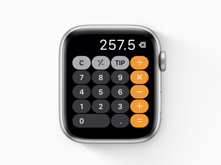 Längst überfällig führt Apple mit watchOS 6 den Taschenrechner ein. Die Wartezeit hat sich gelohnt. Der Rechner fällt zwar nicht so umfangreich aus wie sein iOS-Pendant, aber dafür hat sich Apple eine praktische Funktion einfallen lassen, die exklusiv auf der Apple Watch verfügbar ist: eine Trinkgeldfunktion. Diese berechnet nämlich nicht nur das Trinkgeld, sondern kann die Rechnung auch schnell durch mehrere Personen teilen.
