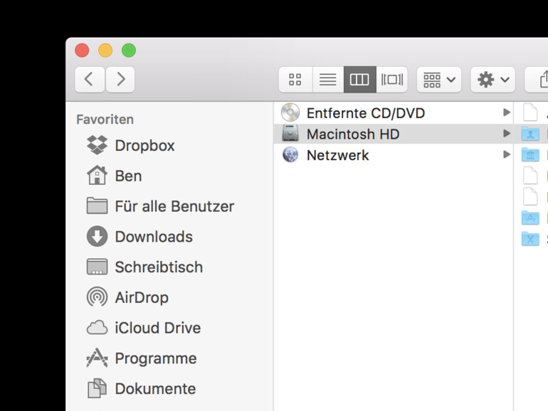 Schritt 2: Sie sehen nun die Festplatte mit der Bezeichnung „Macintosh HD“. Klicke darauf.