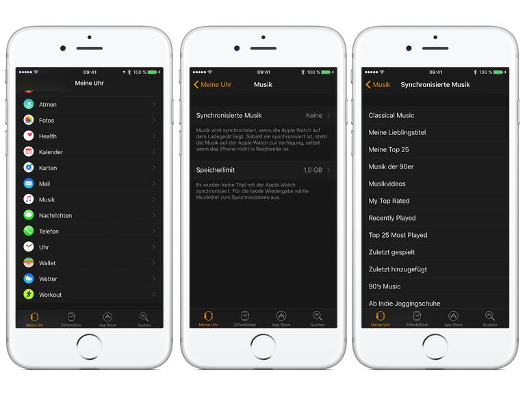 Bevor Sie Ihre Playlist auf die Apple Watch übertragen, stellen Sie sicher, dass sie mit dem Ladegerät verbunden ist und geladen wird. Nun nehmen Sie das gekoppelte iPhone zur Hand und öffnen die Watch-App. Tippen Sie dort auf „Meine Uhr“ > „Musik“ > „Synchronisierte Musik“. Wählen Sie anschließend die gewünschte Playlist aus und schon beginnt das iPhone die Musik auf Ihre Apple Watch zu übertragen. Dieser Vorgang kann sehr viel Zeit in Anspruch nehmen und sollte auch nicht unterbrochen werden - etwa durch einen Abbruch der Bluetooth-Verbindung oder das Lösen des Ladekabels.