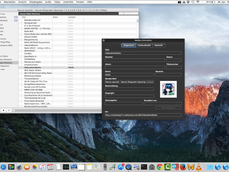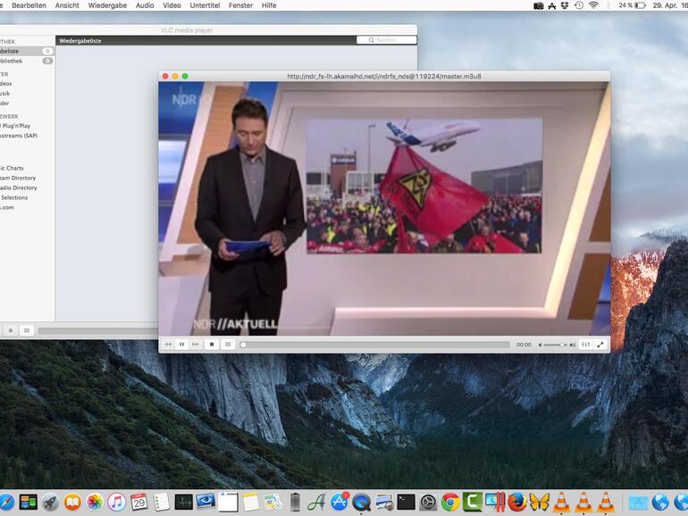 Der Rivale von Apple hat im Bereich Netzwerk weniger zu bieten: Möglich ist nur das Streaming per HTTP; dazu gibt man im Eintrag „Adresse öffnen“ des „Ablage“-Menüs die Adresse des gewünschten Streams ein. Das sogenannte HTTP-Livestreaming wird beispielsweise von Apple bei seinen Keynotes verwendet, ist aber eher selten. Internetradio und Videostreaming sind hingegen Aufgaben von iTunes, und für das Livestreaming von Bildschirminhalten ist unter OS X die Nachrichten-App vorgesehen. Insgesamt hat VLC hier also mehr zu bieten, wenn es auch bei der Zuverlässigkeit mitunter etwas hapert.