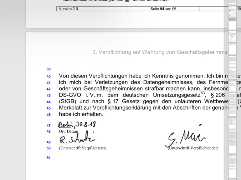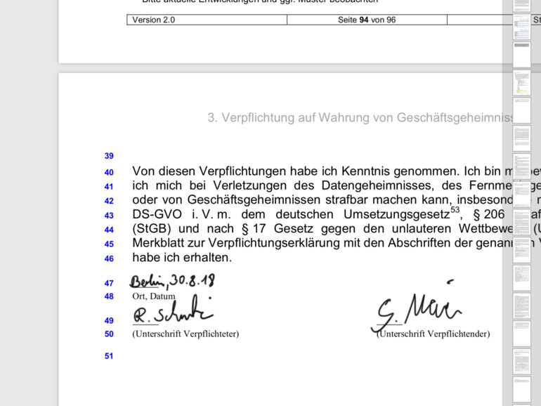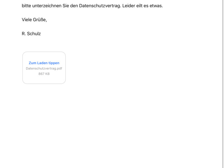 Mit dem iPad und dem Apple Pencil lässt sich das Ausdrucken und erneute Scannen vollständig umgehen. Rufen Sie dazu die PDF auf und scrollen Sie bis zum Unterschriften-Feld.