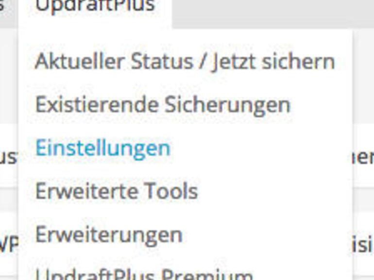 Nach seiner Installation trägt sich UpdraftPlus mit einem eigenen Menü ins WordPress-Dashboard ein. Öffne die Einstellungen des Plug-ins mit dem entsprechenden Eintrag.