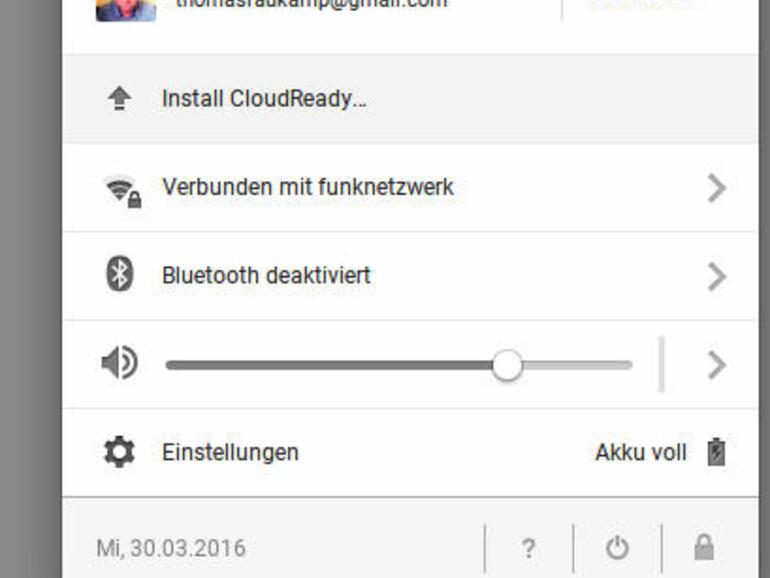 Findet sich der von dir genutzte Rechner nicht in der Kompatibilitätsliste, musst du von einem Installationsprozess nicht unbedingt absehen; Neverware empfiehlt ein Gerät mit mindestens 1 GB RAM. Auch in Sachen Massenspeicher zeigt sich das System erfreulich genügsam: Eine 8 GB fassende Festplatte oder SSD reicht für den Systemstart vollkommen aus – wie Chrome OS greift auch CloudReady zum Speichern von Daten primär auf den Onlinespeicher Google Drive zurück, weshalb eine schnelle Wi-Fi- beziehungsweise Ethernet-Verbindung Pflicht ist.