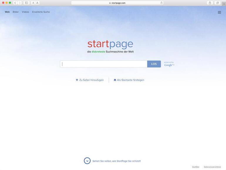 Die niederländische Suchmaschine Startpage.com, schon seit 1998 bekannt unter der Bezeichnung ixquick, ist der einzige Anbieter mit „offiziellem Segen“ der Datenschützer und erhielt 2008 das europäischen Gütesiegel für Datenschutz. Die schnörkellose Suchmaschine speichert ebenfalls keine IP-Adressen oder Cookies – Sie können sogar auswählen, ob Sie Server in den USA oder in der EU verwenden möchten. Startpage.com selbst setzt übrigens auf Google als Suchmaschine – allerdings mit den genannten Sicherheitsmechanismen. Für Safari-Anwender gibt es die Möglichkeit, Startpage.com mittels einer Erweiterung als Suchmaschine einzurichten.