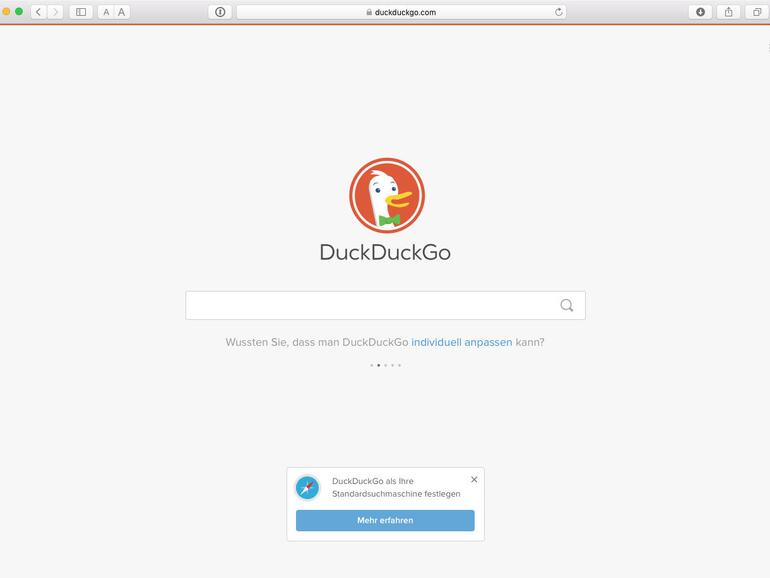 Die Google-Suchmaschine kann man auch via DuckDuckGo aufrufen (in dem Fall sind der Suchanfrage die Zeichen !g voranfügen (mit Leerzeichen hinter dem 'g').