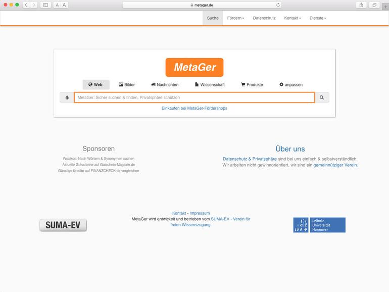 Eine der interessantesten Suchmaschinen für deutschsprachige Anwender ist Metager. Dabei handelt es sich um eine sogenannte Metasuchmaschine. Diese befragen mehrere „normale“ Suchmaschinen, sammeln deren Ergebnisse, um sie aufzubereiten und auszugeben. Anwender haben zudem die Möglichkeit, gezielt auszuwählen, welche Suchmaschinen Metager befragen und wie der Dienst diese darstellen soll. Die Server befinden sich in Deutschland, IP-Adressen oder Cookies werden nicht gespeichert und die Verbindung ist zudem verschlüsselt.