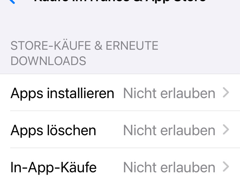 Die Installation oder das Löschen von Apps verhinderst du: „Einstellungen > Bildschirmzeit > Beschränkungen > Apps installieren“ bzw. „Apps löschen“. Dann „Nicht erlauben“.